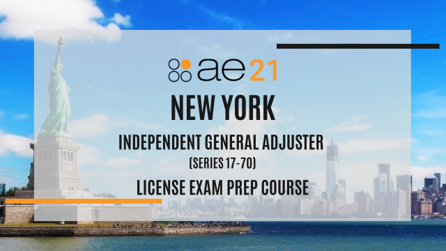 AE21 Online’s New York Independent General Adjuster License Exam-Prep Course equips you to tackle the most comprehensive adjuster exam in the nation.